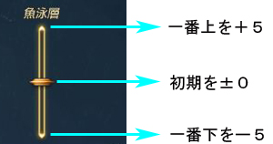 タナの設定は11段階あります。私は中央を0として、上は+5、下は-5まで決めています。図にするとこんな感じです。